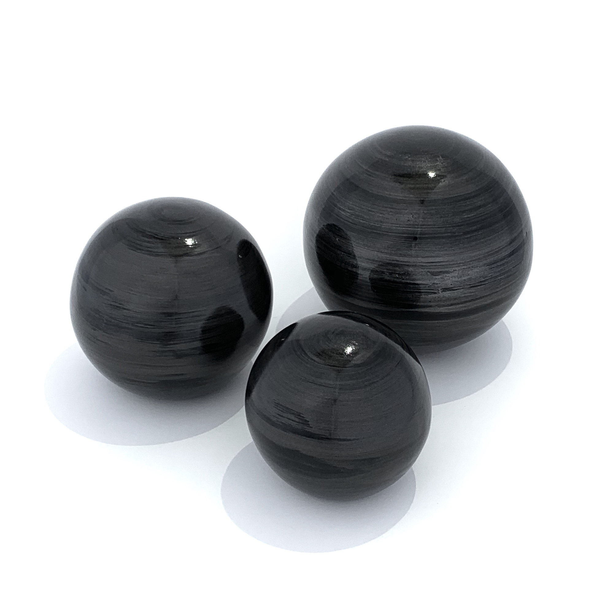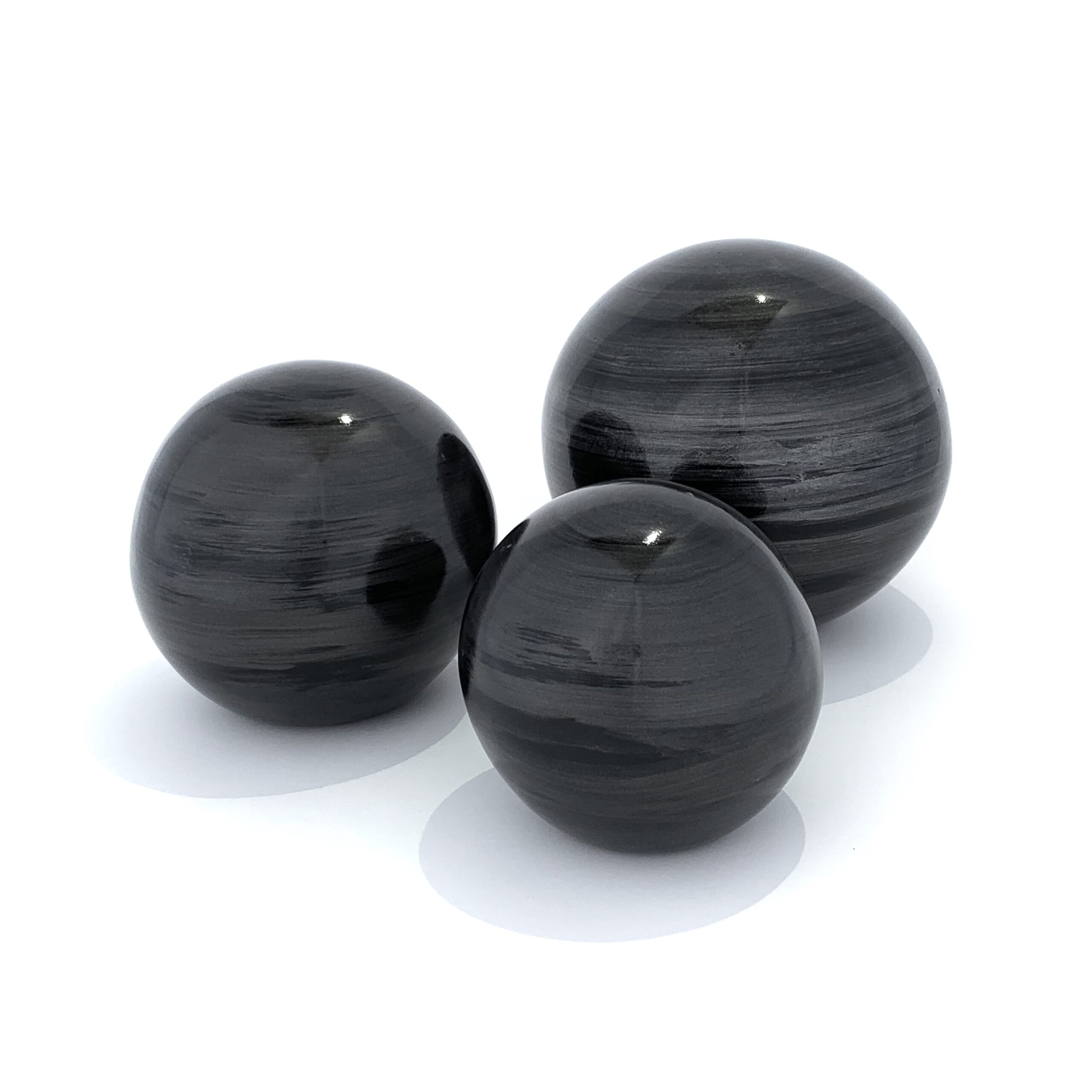 Este juego de esferas de vidrio soplado, en combinación de negro y plata, aporta sofisticación y un estilo contemporáneo a tu hogar. Por su tamaño, son perfectas para colocarlas juntas como centro de mesa en la sala, sobre una repisa elegante o en cualquier rincón especial que desees resaltar con un detalle diferente y artesanal.