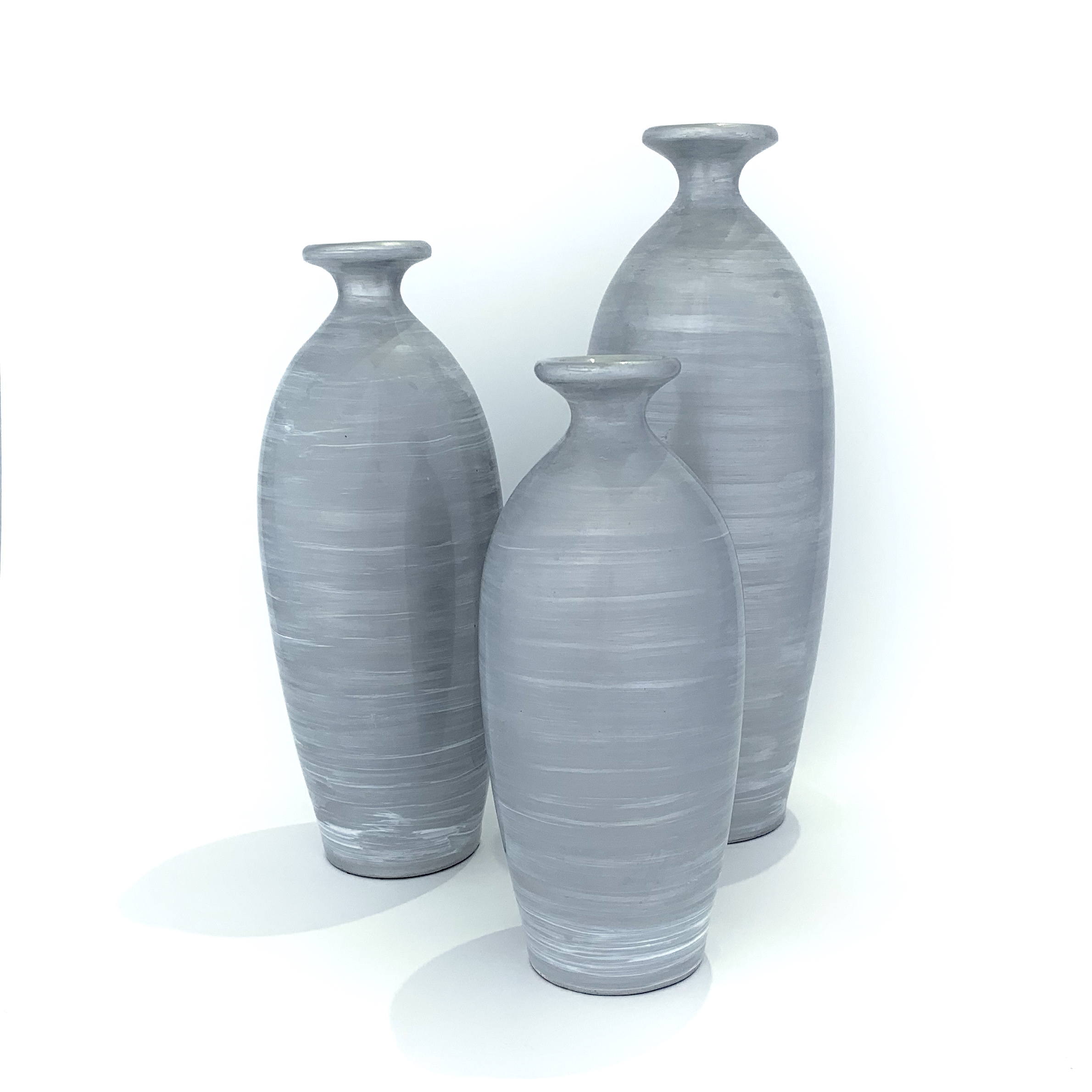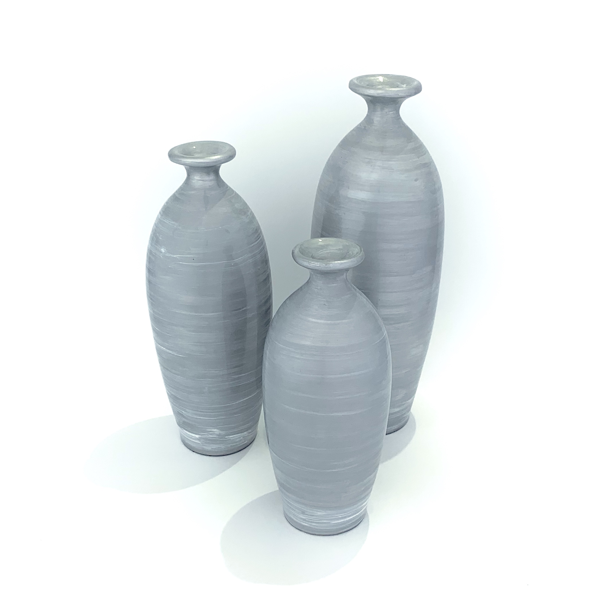 Este set incluye tres jarrones decorativos de cerámica en distintos tamaños, con un acabado mate y líneas sutiles que añaden un toque contemporáneo y sofisticado. El jarrón más grande mide aproximadamente 40 cm de altura, el intermedio 35 cm y el pequeño 30 cm, lo que permite acomodarlos juntos en una mesa de entrada, consola o repisa para crear una composición visual armoniosa. Puedes exhibirlos vacíos o decorarlos con ramas secas, follaje o flores artificiales para personalizar tu sala, comedor, recibidor u oficina. Este set es ideal para quienes buscan elegancia y versatilidad en la decoración.