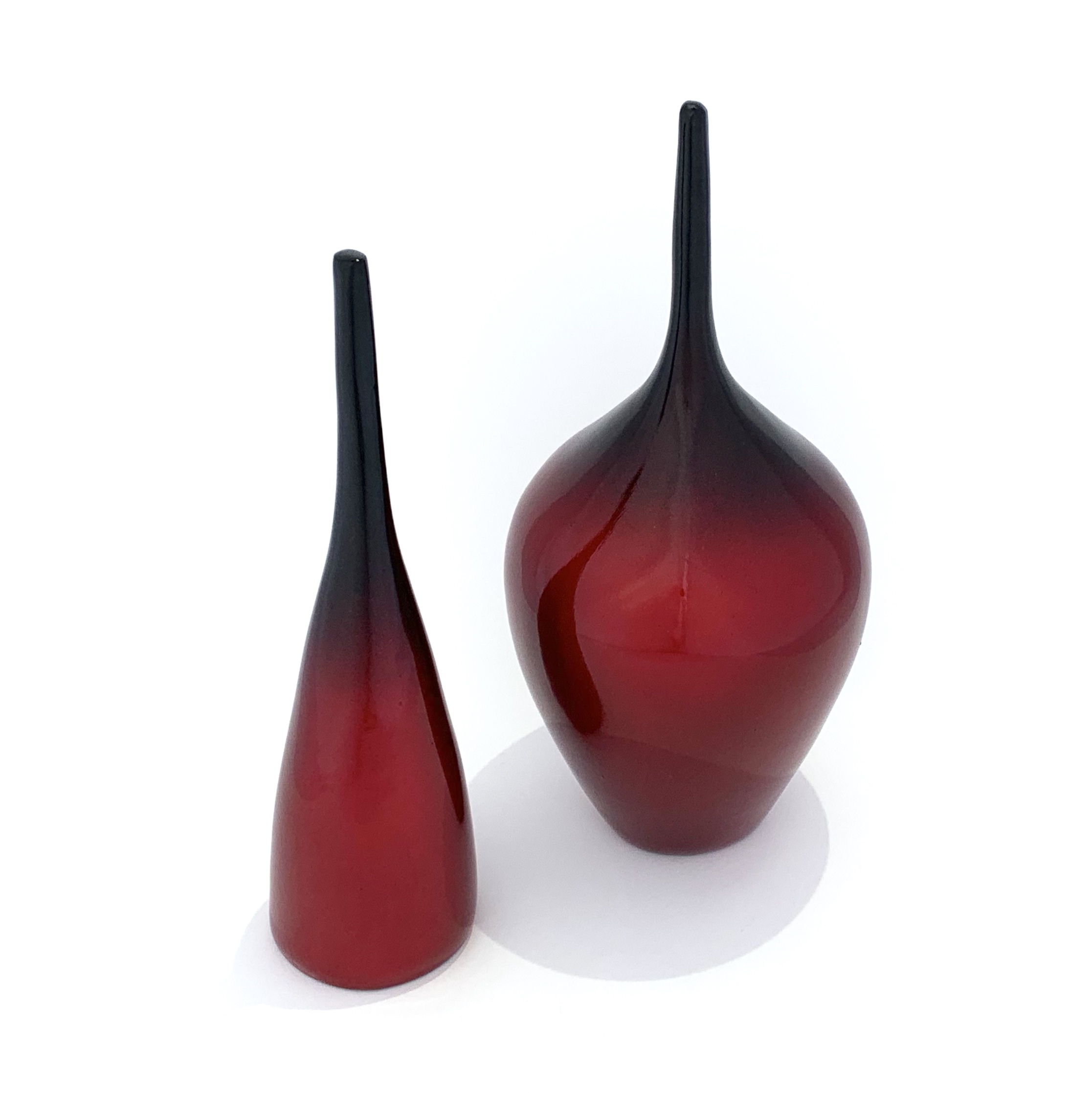 Este set incluye dos jarrones decorativos de cristal soplado, cada uno con un estilo alargado y elegante que crea un impacto visual moderno y sofisticado. El jarrón más alto mide aproximadamente 35 cm de altura y el más bajo cerca de 27 cm, haciéndolos ideales para colocar juntos sobre una consola, mesa de centro, repisa o escritorio. Su diseño los vuelve perfectos tanto como piezas individuales o en conjunto. Son una excelente opción para agregar un detalle contemporáneo en la sala, comedor, oficina o recibidor.