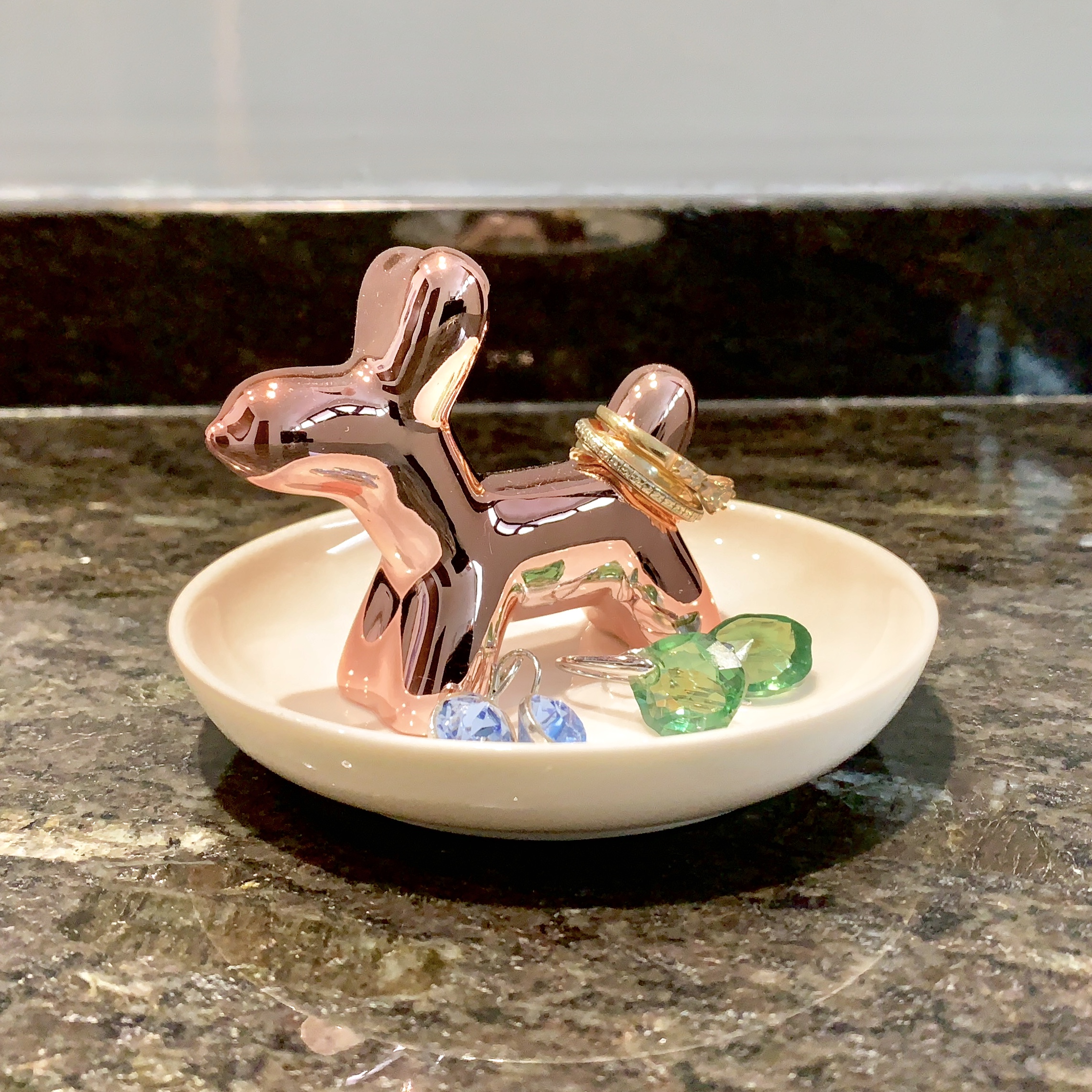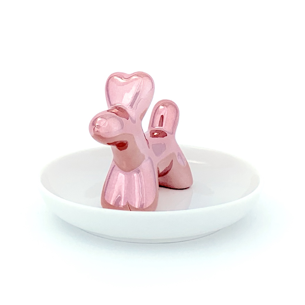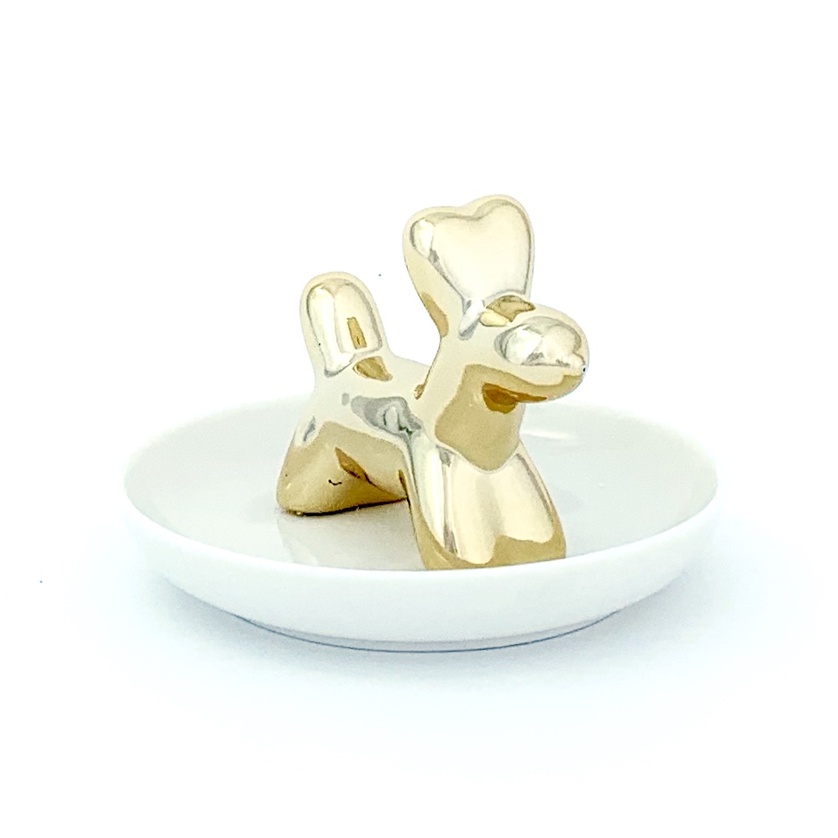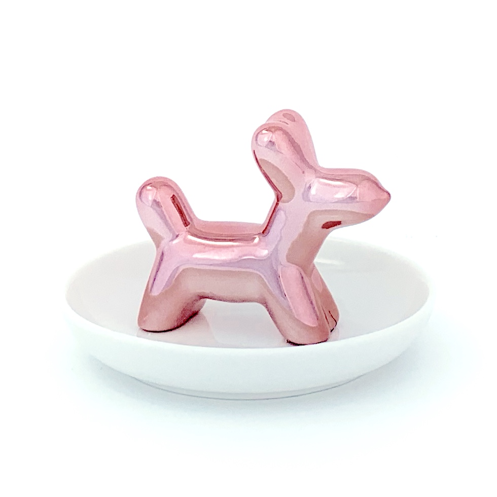 Este plato organizador incluye una simpática figura de perro tipo globo, perfecta para colocar anillos, aretes, llaves u otros accesorios pequeños. El plato mide aproximadamente 8 cm de diámetro y la figura unos 6 cm de alto, lo que lo hace compacto y práctico para tu buró, tocador, escritorio o baño. Además de funcional, añade un acento alegre y original a cualquier espacio, convirtiéndolo en un regalo ideal para quienes gustan de detalles creativos y modernos.
